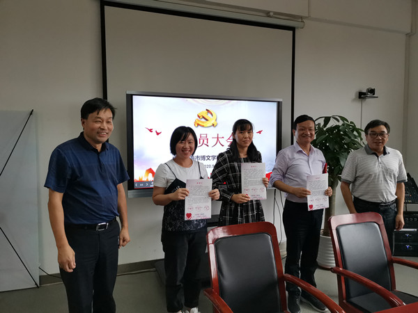 最后,博文学校党支部向在疫情阶段表现优秀的党员教师进行表彰并颁发奖状,向每一位自愿捐款的党员教师颁发了由中共中央组织部印制的捐款收据,这是一次特殊的红色记忆。