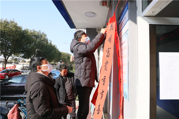 受疫情防控要求,博文学校志愿者没有进行当场书写对联,而是把书写好的80多幅对联,送到了社区居民朋友手中,恭祝居民朋友们喜过新年。社区居民们也是喜气洋洋,互相祝愿。