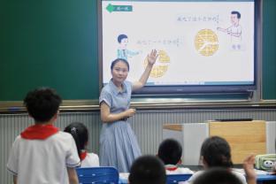 刘欣瑜老师执教《同分母分数加减法(1)》一课。她围绕“一共吃了这个月饼的几分之几?”这一情境,组织学生通过画一画、说一说等方式,自主探究算法、理解算理,并成功实现知识迁移。刘老师的课堂注重学生的思维和表达,促进了算理与算法的深度融合,展现了“双新”课堂中学生主体、教师引导的教学样态