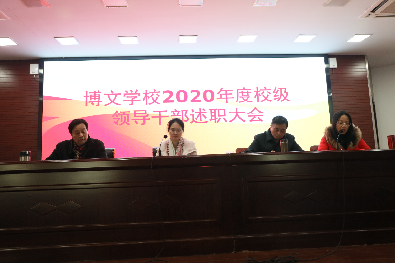 2020年12月25日,博文学校召开2020年度校级领导干部述职大会。此次大会由教师代表、全体党员、及行政人员参加,在朱柳娟老师的主持下,区教育局特派员的监督下,会议有序进行。会议中,在吴建新校长、徐建华书记分别进行了述职报告后,与会代表进行了公开、公正、公平的投票,为本次校级领导干部述职画上了圆满的句号。