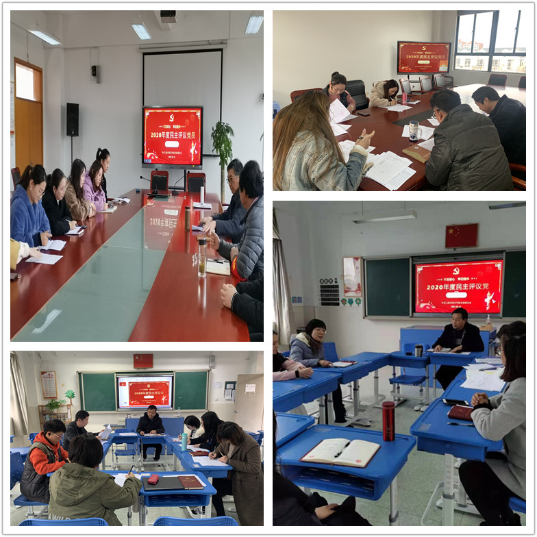2021年3月12日下午,博文学校党支部全体在职党员教师以党小组为单位,分别在A204、A305、七1班、七2班教室组织进行2020年度民主评议党员。