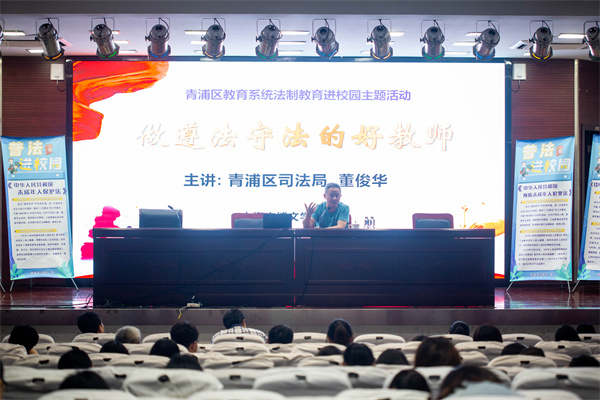 2021年10月15日星期五,上海市博文学校邀请了青浦区司法局的董俊华老师,为全体教师就“如何做一个遵法守法的好教师”这一主题进行培训。