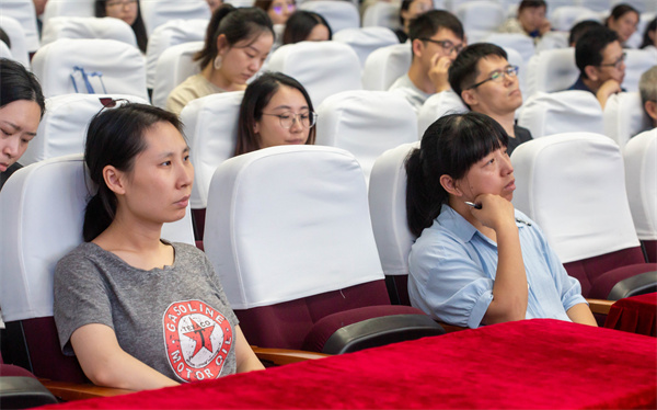 董俊华老师依次介绍了合法性,规则性,程序性,证据性等四种思维方式,并结合教师法和未成年人保护法,以生动的案例,呼吁老师们运用法治思维做好学生的引路人和保护人,做一名有理想信念,有道德情操,有扎实学识,有仁爱之心的四有好老师。